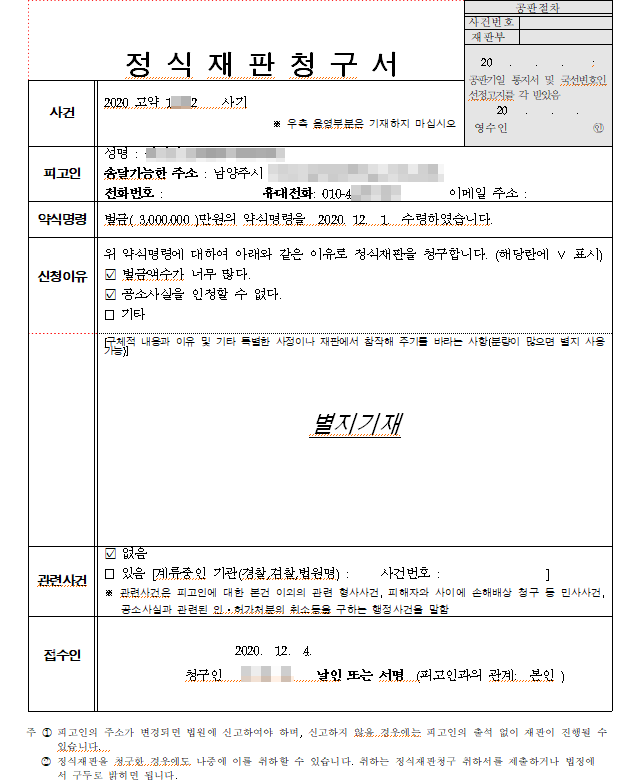 이상 진술한 바와 같이, 피고인은 사기죄를 범하지 않았습니다. 부득이하게 채권자에게 피해가 가게된 점에 대해서는 너무나 미안하고 죄송할 따름입니다. 그러나, 돈을 빌리고 갚지 못한 사실만으로 범죄자가 된다는 것은 너무나 가혹하며, 이에 따라 벌금 300만원까지 내야하고, 이를 못 내면 노역장에 유치되어 노동을 해야한다는 것은 아직 어린 아이를 키워하고 몸도 안좋은 피고인에게는 너무나 가혹한 처사입니다. 이에, 재판부에서 모든 사정을 두루 살피어 현명한 판결을 내려주시기 바랍니다.