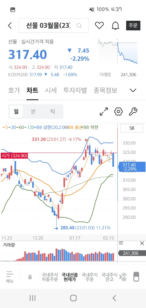 - ETF와 ELW를 동시에 운용할 계획이므로 차트는 선물 차트를 주로 봅니다.